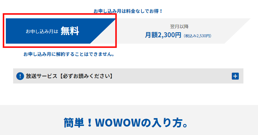 はじめてWOWOWに加入する人は、初月の視聴料が無料になるようです。